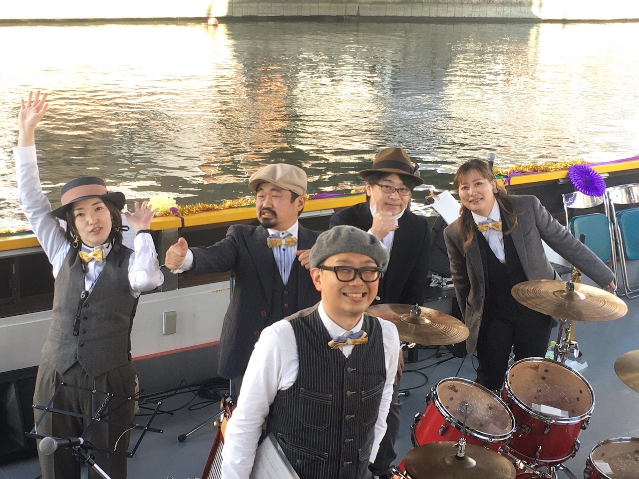 MJの出番はステージ船とジャズボートの2回。ステージ船では沿岸の皆様に沢山の拍手を頂き、ジャズボートも満員のお客様にご乗船頂けました。本当にありがとうございました!
