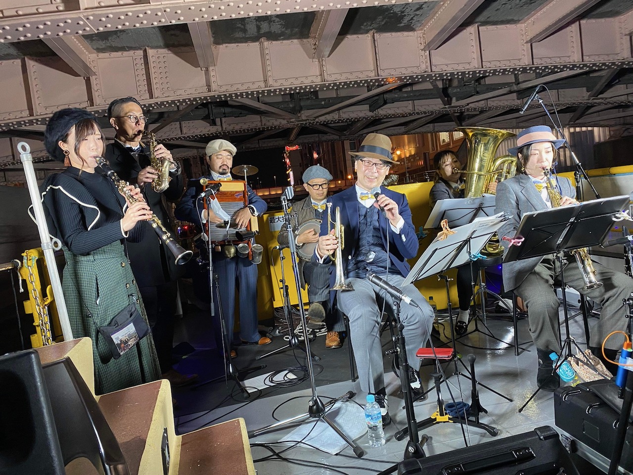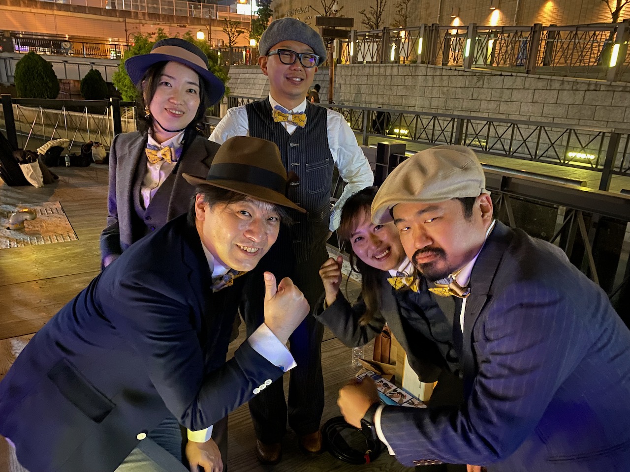 一緒に出演した他バンドの皆さん。それぞれのスケジュールで動いているので会話できるのはわずかな時間でしたが交流できて良かったです♪ 今回は道頓堀リバーフェスティバルの一環だったようで、道頓堀界隈は他のイベントでも賑わっていましたね。ボート同士のすれ違いはもちろん、他イベントのステージ前を演奏しながら通り過ぎるのも新鮮でした。