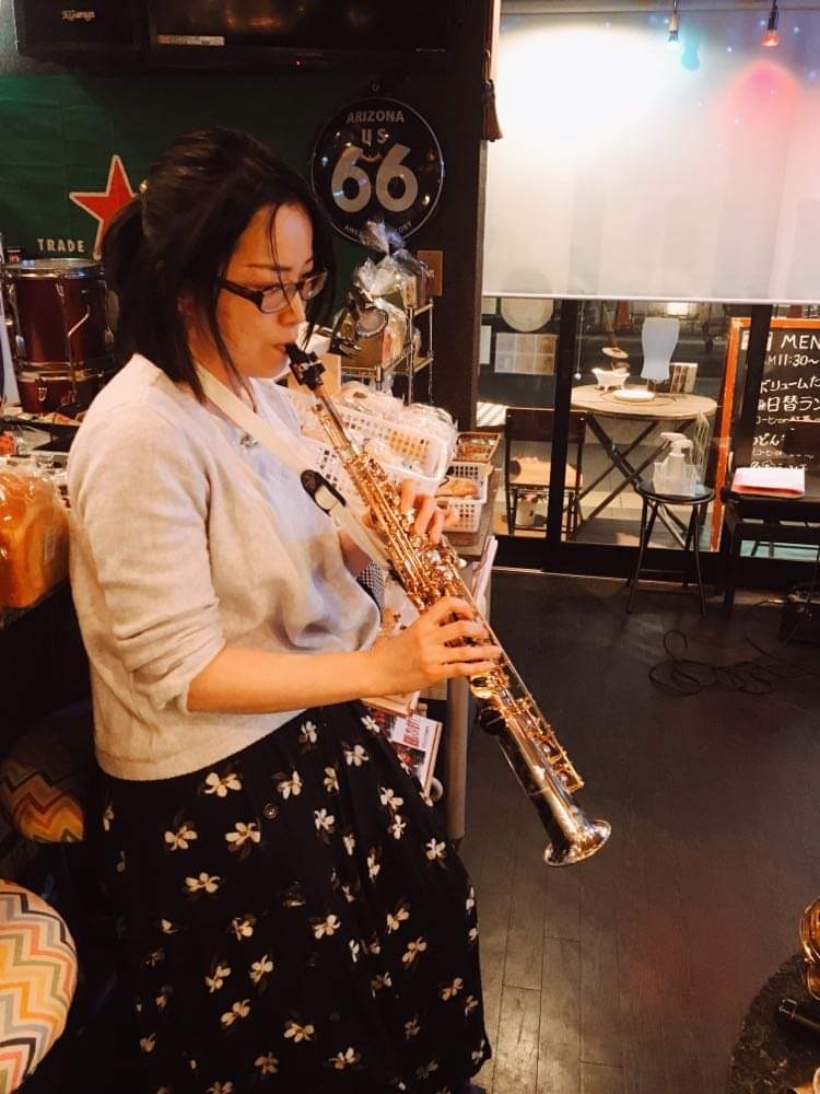 ソプラノサックスを演奏中のAzu